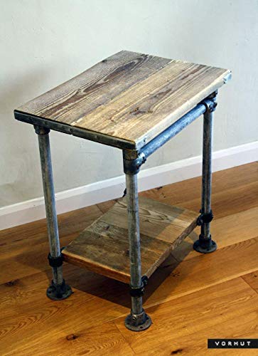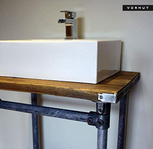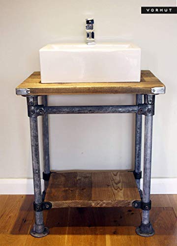 Vorhut 'Kraken' - Vintage Industrial Scaffold Board Vanity in Tarnished Metal with Flanged Feet (tavolo industriale vintage con piedini flangiati)