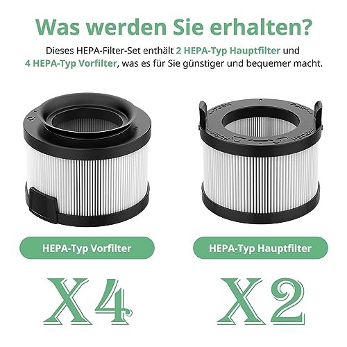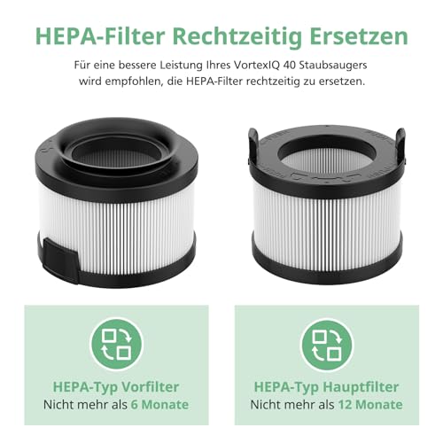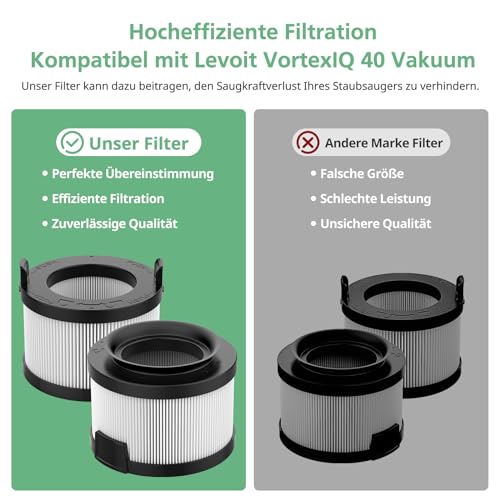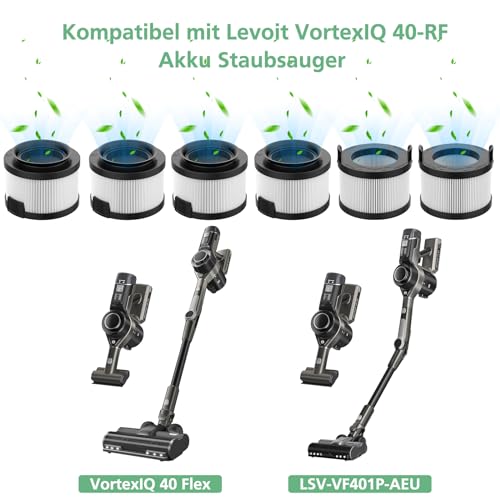 Perfetta vestibilità per Levoit VortexIQ 40: Questo filtro HEPA di per aspirapolvere di alta qualità da 6 pezzi compatibile con Levoit VortexIQ 40-RF/VortexIQ 40 Flex/LSV-VF401P-AEU, è stato sviluppato appositamente per Levoit VortexIQ 40 Cordless Stick Vacuum. Il nostro filtro HEPA di per VortexIQ 40-RF ha la stessa qualità e funzionalità dell'originale, non preoccupatevi al momento dell'acquisto.