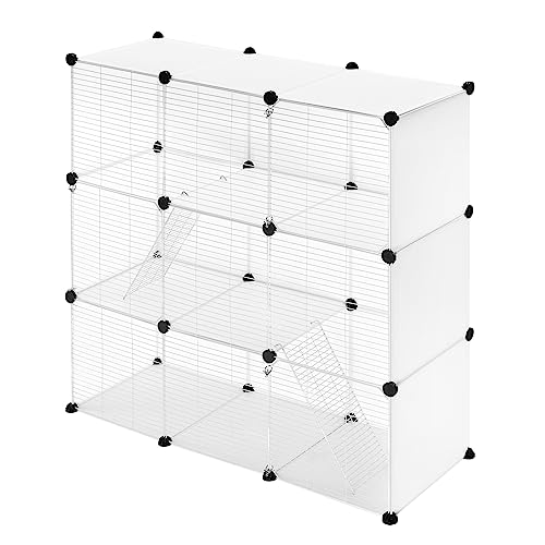 VORTZT Gabbia per Conigli da Interno, Recinto per Gattini, Gabbia per Porcellini d'India, Box per Piccoli Animali, con 2 Rampe 3 Porte, Pannelli Modulari 35x35cm, Bianco