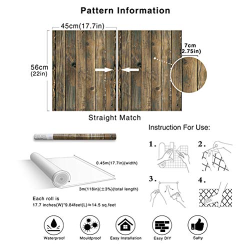 Vosarea - Carta da parati in legno rustico, carta da parati, autoadesiva, carta da parati, rimovibile, bastone e pelare in vinile falso carta da parati in legno