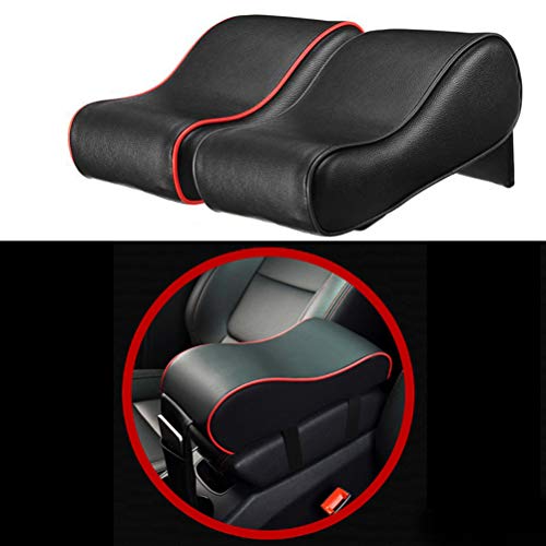 VOSAREA Cuscino Consolle Bracciolo Consolle Centrale Auto PU Cuscino per Consolle Pelle Morbido Cuscino per Bracciolo Auto Morbido per Automobili (Bordo Nero-Rosso)