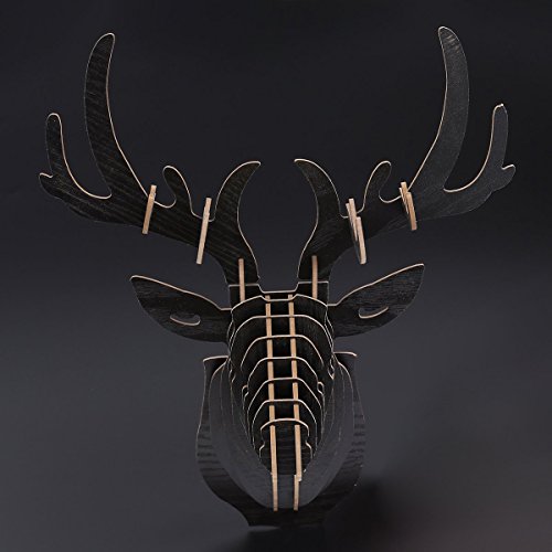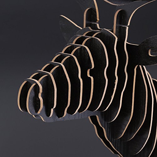 Vosarea, puzzle 3D in legno a forma di testa di cervo, ideale per decorare le pareti del salotto, design vintage, colore: nero.