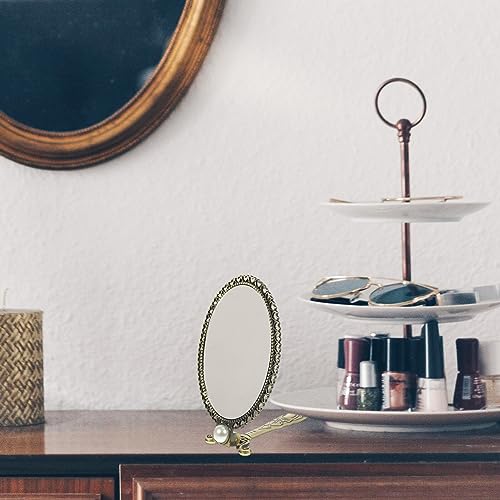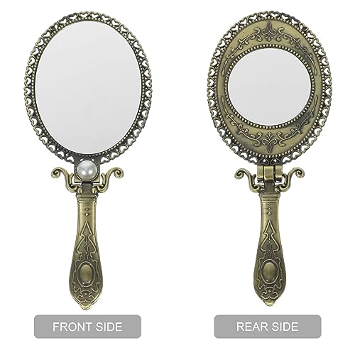 Vosarea Specchio da mano vintage ovale con manico pieghevole, per il trucco a mano