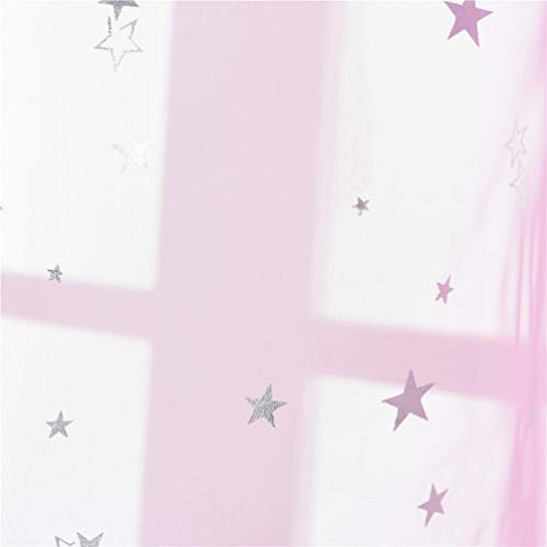 VOSAREA Tenda per Finestra in Voile Romantica Pellicola Argentata con Stelle Glitterate, per la Decorazione della Finestra, per Camera da Letto, Soggiorno, 100 x 270 cm (Rosa)