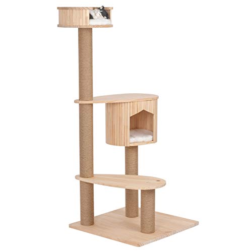 VOSS.PET Albero tiragraffi "Isabel" 135 cm, tiragraffi per gatti Premium con cuccia e piattaforme di riposo in vero legno