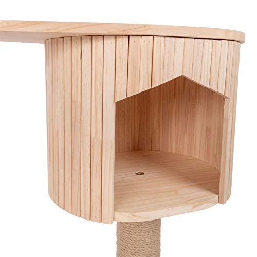 ALBERO TIRAGRAFFI STABILE con due cucce su più livelli e una base in legno molto larga e stabile, la base è 45 % più grande rispetto ad altri alberi tiragraffi