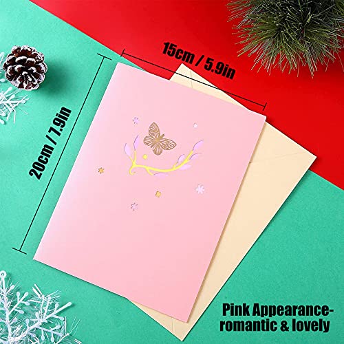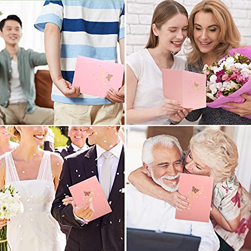 VOSSOT Biglietto di auguri 3D pop-up fatto a mano, biglietto di auguri per matrimonio, con busta per compleanno, San Valentino, laurea, anniversario di matrimonio, anniversario (farfalle volanti rosa)