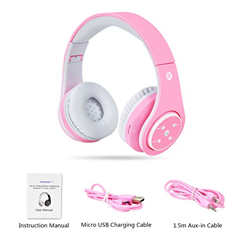 VOTONES Cuffie Bluetooth per Bambini, Stereo a 85 Db Volume Limitato Senza Fili/con Filo Pieghevole sopra Orecchio Cuffia per Le Ragazze, Cuffie Leggere per Bambini con Microfono Incorporato - Rosa