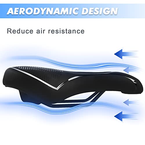Design Ergonomico Brillante: la sella ergonomica per bicicletta ha un'area anteriore stretta per consentire alle gambe di muoversi liberamente e prevenire lo sfregamento delle gambe, un'area posteriore sufficientemente ampia per aumentare il supporto dei glutei e offrire il massimo comfort.