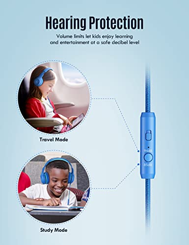 Auricolari con limitazione del volume commutabile di 85 dB/94 dB per bambini: per proteggere meglio l'udito dei vostri piccoli, le nostre cuffie per bambini con cavo sono dotate di 2 limitazioni di volume. Scegli la modalità di protezione dell'udito da 85 dB in un ambiente normale come aule, biblioteca, a casa la modalità di protezione dell'udito. Passa in modalità 94 dB in un ambiente rumoroso come auto o aereo, per sentirti chiaro e sicuro.