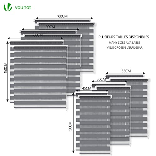 VOUNOT Set di 2 Tenda a Rullo Doppia Strato Oscurante Giorno e Notte, Catenella Laterale, Bande Trasparenti e Opache, Tenda Interno Zebra Blinds Grigio, 80 x 150 cm