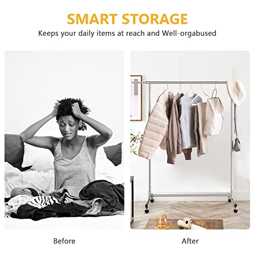 VOWNER Appendiabiti, Appendiabiti con Ruote, Appendiabiti da Terra, Stand Appendiabiti, Appendiabiti Regolabile in Altezza e Lunghezza-132 x 40 x 170 cm-Girevole a 360° Metallo Cromato Portata 100 kg