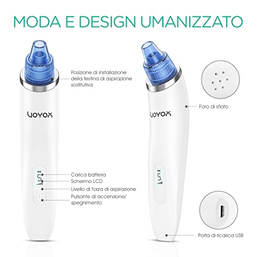 POTENTE ASPIRAZIONE PER UNA PULIZIA EFFICACE - Il nuovo VOYOR aspiratore punti neri aggiornato può fornire un'aspirazione forte per una pulizia viso profonda della pelle. Questo aspira punti neri elettrico può rimuovere efficacemente punti neri, punti neri, acne, pelle morta, olio, residui di trucco o sporco dei pori. Può anche aumentare l'elasticità della pelle, stringere la pelle flaccida, ridurre le rughe, restringere i pori e levigare le rughe d'espressione.