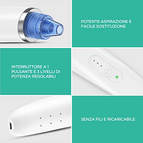 3 LIVELLI DI FORZA REGOLABILI - È possibile regolare facilmente i livelli di aspirazione più appropriati per le diverse aree della pelle. Il livello basso può essere utilizzato per la pelle sensibile, il livello medio per i piccoli punti neri e il livello alto per i punti neri ostinati.