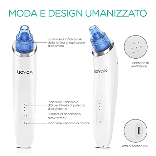 VOYOR Aspiratore Punti Neri 6-In-1 Aspira Rimozione di Elettrico Comedone Estrattore Pulizia Viso Tramite Ricaricabile per Uomini e Donne BR410
