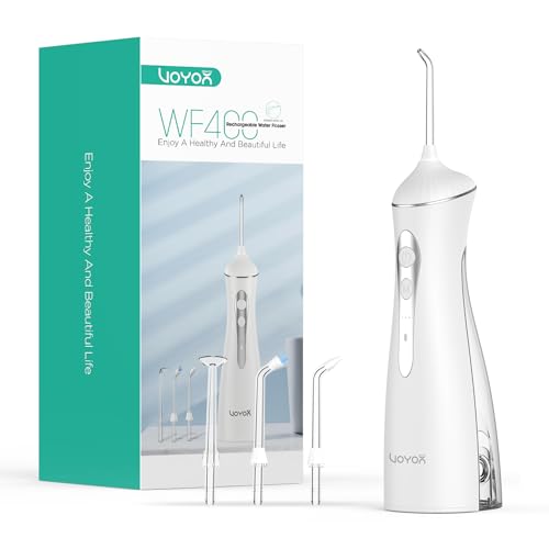 VOYOR-HEALTH Idropulsore Dentale Portatile con 4 Ugelli Girevoli 3 Modalità Irrigatore Orale, Pulizia Denti Idrogetto, Impermeabile IPX7 Ricaricabile USB, Adatto per i Viaggi a Casa WF400, Bianco