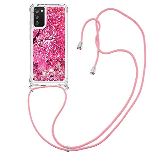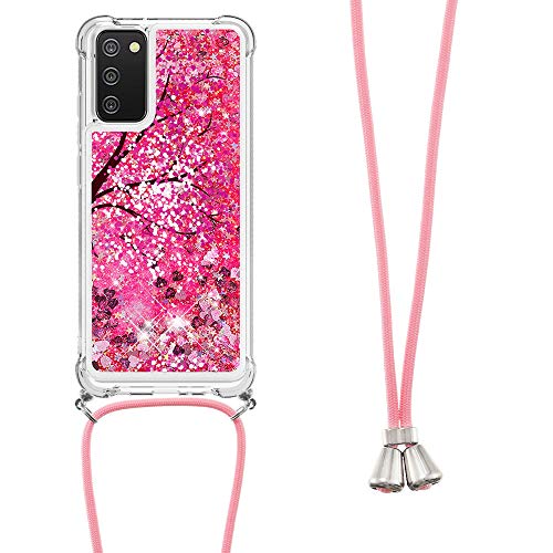 VQWQ Cover per Samsung Galaxy A02S - Custodia Samsung Galaxy A02S con Cinturino in Silicone Case per Samsung Galaxy A02S TPU Antiurto Protezione Cover [Glitter Quicksand ] -Ciliegia