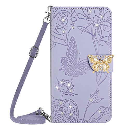 VQWQ Custodia per OPPO A91-1,5 M Corda Lusso Diamante Pelle Portafoglio Case Magnet di Qualità con Slot Schede e Contanti Case per OPPO A91 [Brillare] -Viola