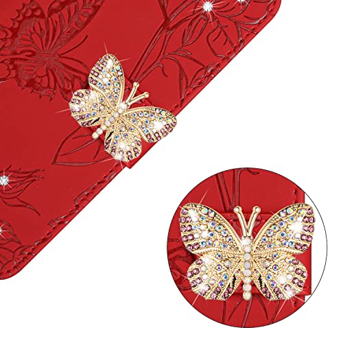 VQWQ Custodia per OPPO Realme C55-1,5 M Corda Lusso Diamante Pelle Portafoglio Case Magnet di Qualità Slot Schede Contanti Case per OPPO Realme C55 [Brillare] -Red 2