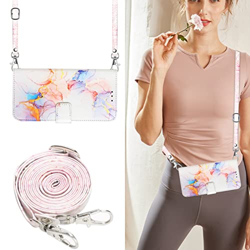 VQWQ Custodia per OPPO Reno 6 Pro+ 5G - con Lungo Collo Cordino Custodia Portafoglio in Pelle Dipinta Marmo Flip Cover + Interna in TPU per OPPO Reno 6 Pro+ 5G [YB] -Bianco