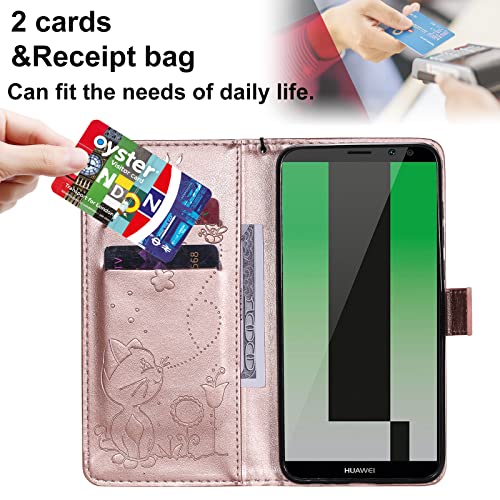 VQWQ Custodia in Pelle Huawei Mate 10 Lite - Custodia Flip con Supporto Gatto e Ape Cover con Porta Carte Portafoglio Magnetica Wallet Case per Huawei Mate 10 Lite [Carino] -Oro rosa