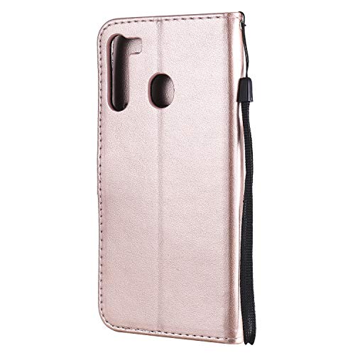 VQWQ Custodia in Pelle Samsung Galaxy A21 - Custodia Flip con Supporto Gatto e Ape Cover con Porta Carte Portafoglio Magnetica Wallet Case per Samsung Galaxy A21 [Carino] -Oro rosa