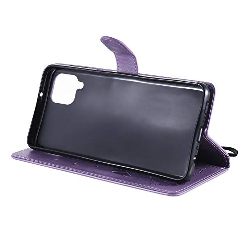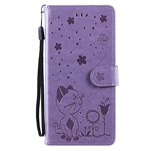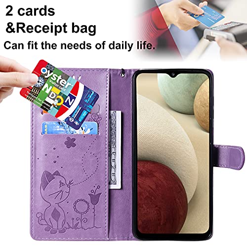 VQWQ Custodia in Pelle Samsung Galaxy A12 - Custodia Flip con Supporto Gatto e Ape Cover con Porta Carte Portafoglio Magnetica Wallet Case per Samsung Galaxy A12 [Carino] -Viola