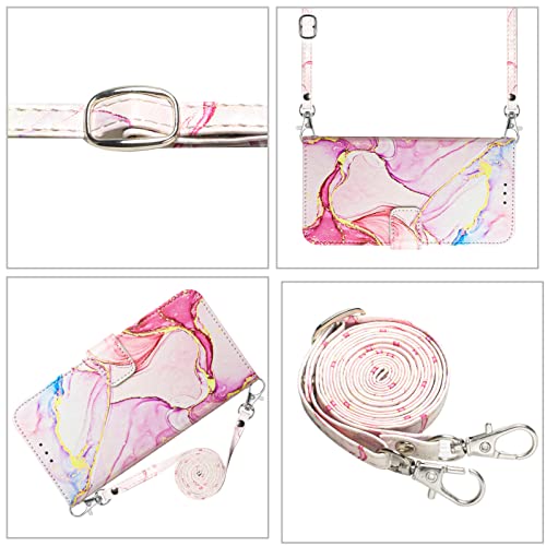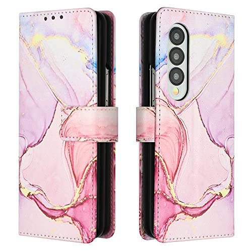 VQWQ Custodia per Samsung Galaxy Z Fold 4 5G - con Lungo Collo Cordino Custodia Portafoglio in Pelle Dipinta Marmo Flip Cover + Interna in TPU per Samsung Galaxy Z Fold 4 5G [YB] -Rosa-oro