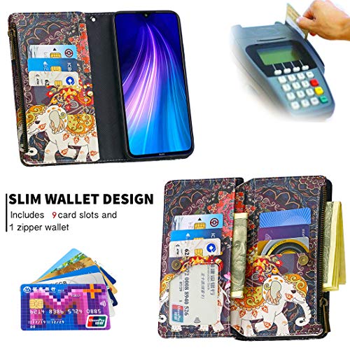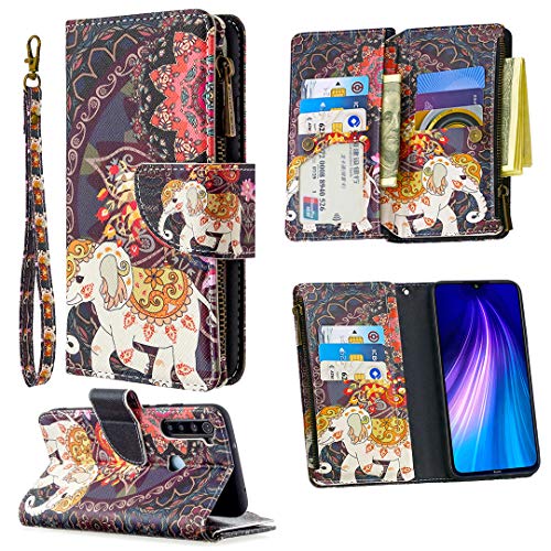 VQWQ Custodia per Xiaomi Redmi Note 8 - Custodia in Pelle Xiaomi Redmi Note 8 Cover a Libro con Porta Carte Portafoglio Magnetica per Xiaomi Redmi Note 8 Cover [Dipinto ] - Elefante
