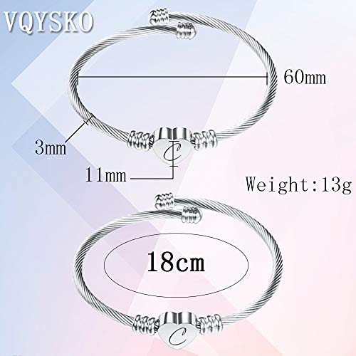 VQYSKO Bracciale a cavo con iniziale A-Z incisa a scelta, da donna e ragazza, in acciaio inossidabile, 5 colori, diametro bracciale da 18 cm, custodia inclusa, 18 cm, Acciaio inossidabile,