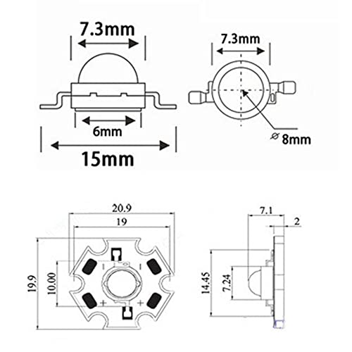 3 Watt, infrarossi, 850 nm, chip 42 mil / angolo di emissione luce di 120-140 gradi, chip LED ad intensità super luminosa