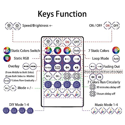 100 modalità di salto incorporata, modalità fai da te, modalità acqua arcobaleno, modalità meteorite, accensione/disattiva la modalità tenda, modalità musica