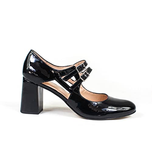 VRADA - Scarpe in Pelle da Donna con Tacco Alto 7 cm - Chiusura con Fibbia Elastica - Fodera in Pelle - Pianta Interna con Spugna - Suola Flessibile Antiscivolo - Tacchi Eleganti - Nero 39 EU
