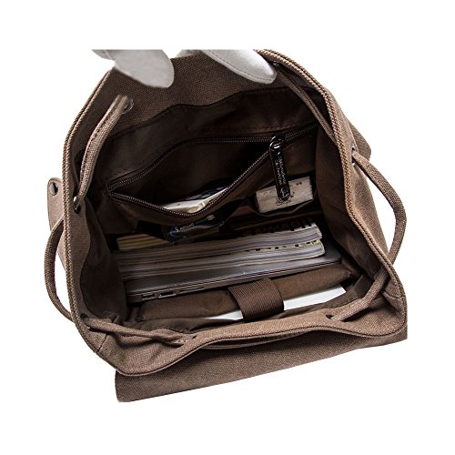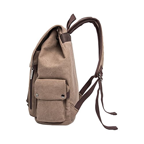 VRIKOO Vintage Canvas Backpack for Laptop School Rucksack Weekender Daypack Bag (Cachi)