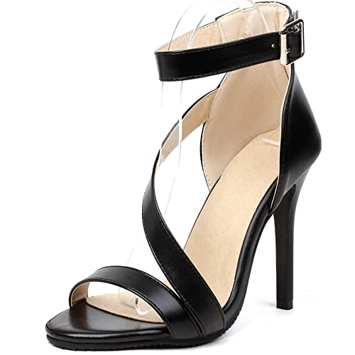 Vrupons Sandali da donna con cinturino alla caviglia, Nero 1, 46 EU