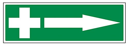Vsafety 31020bj-s "First Aid freccia a destra" Primo soccorso generale Sign, Autoadesivo, paesaggio, 450 mm x 150 mm, colore: verde