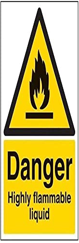 Orientamento verticale. Cartello con scritta "Danger. Liquido altamente infiammabile"