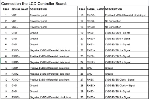 Il connettore dell'interfaccia del segnale dello schermo dovrebbe essere LVDs FIX 30Pin 2ch 8bit.