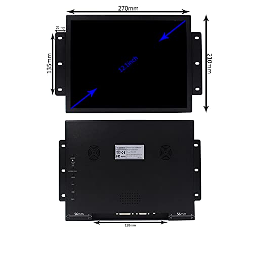 VSDISPLAY Monitor industriale TFT, 12,1 pollici VS121ZJ01 800x600 4:3 Schermo LCD 700 NIT con input video HDMI VGA DVI, Guscio metallico, Dual Speaker