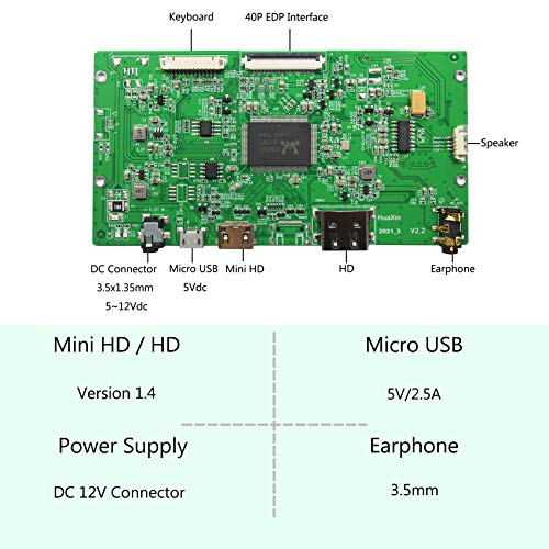 Scheda controller LCD: funziona per schermo LCD EDP 2048 x 1536 51 pin, ingresso video: mini HDMI versione 1.4 Mini HDMI, uscita audio: auricolare (supporto altoparlante 4ohm 2W o 8ohm 1.5W), alimentazione in ingresso: connettore DC 3,5 mm x 1,35 mm 5 ~ 12Vdc Mirco USB 5Vdc (adattatore di alimentazione non Incluso nella confezione, dovrebbe essere preparati da soli) .
