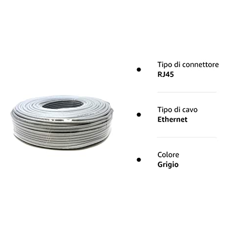 Vsnetwork Matassa 100 MT Metri Cavo di Rete UTP CAT6 CCA RJ45 Bobina di Rete Gigabit 10/100/1000 Mbps LAN ADSL CCTV Ethernet, per Modem, Router, PS4, PS5, Grigio