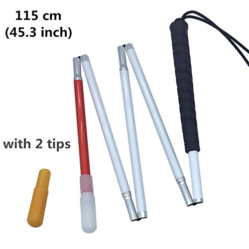 VSONE Alluminio Bastone Bianco Pieghevole per Non Vedenti 5 Sezioni con 2 Punta Plastica (115 cm, Nero Impugnatura)
