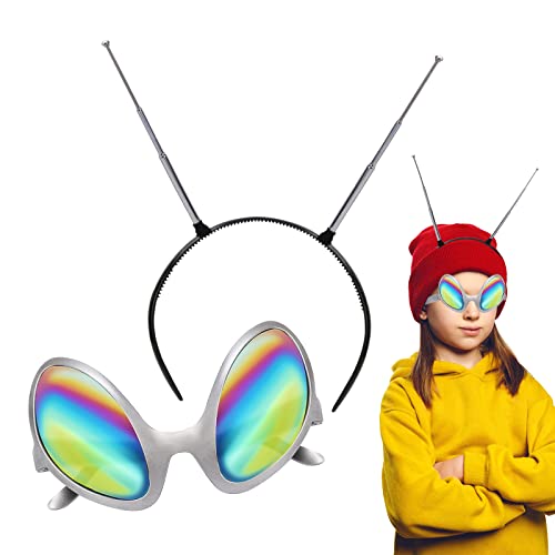 Vspek Alien Glasses Alien Costume Occhiali da Sole con Antenna marziana Copricapo per Adulti e Bambini Bomboniere, discoteca, Cornice Argento,adatto come accessorio per foto di Natale e halloween
