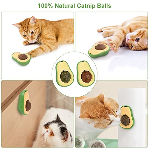 【Design ruotabile a 360°】 L'avocado è alla moda e adorabile e ha una forma piccola e carina, con erba gatta incorporata, può essere ruotato di 360° con un design rotante, in modo che il gattino possa leccarlo facilmente e in modo uniforme, l'erba gatta la palla ruoterà con la lingua del gatto e non cadrà. Viene fornito con un coperchio che impedisce l'ingresso di polvere e mantiene pulite le palline di erba gatta quando non vengono utilizzate.