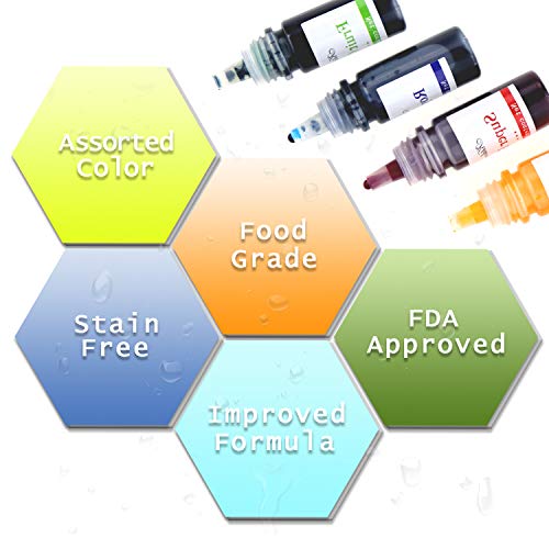 COLORE ATTRAENTE: 10 coloranti deliziosi da 0,24 once. Ognuno ha un colore diverso. I colori sono giallo tramonto, viola, rosso tramonto, rosa, giallo, blu, marrone, nero, verde e rosso.
