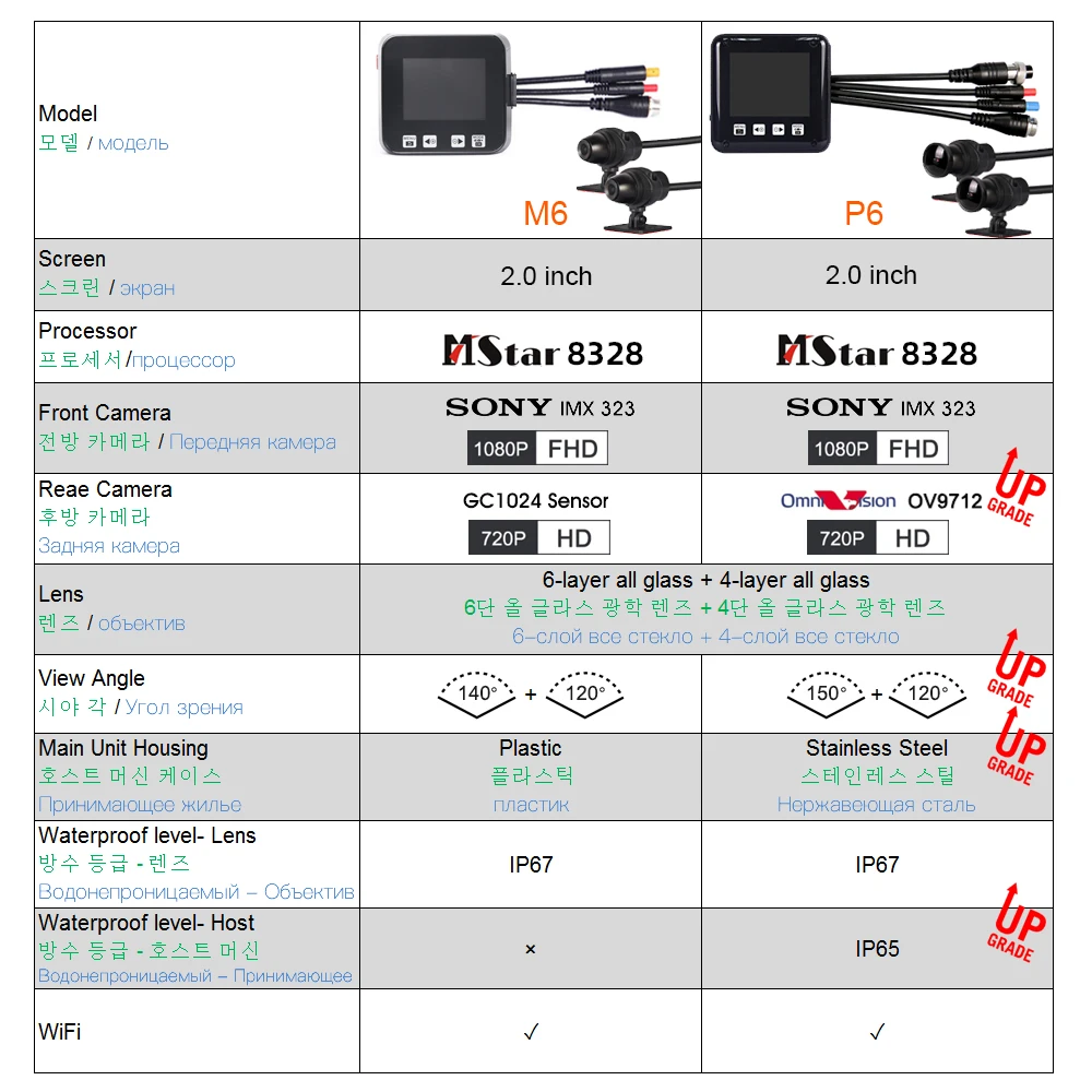SYS VSYS M6L Upgrade M6 WiFi Dual Motorcycle Camera Recorder Moto DVR Motorbike Dash Cam Front SONY IMX 323 1080P Rear View 720P