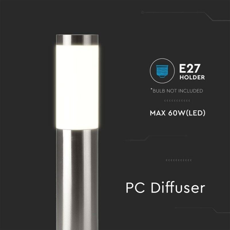 Portalampada da giardino con fissaggio a terra V-TAC Series wall light per 1XE27 da esterno waterproof IP44, in acciaio inox di colore nickel satinato effetto spazzolato e copertura in plastica di colore bianco opaco. Pratica ed efficace soluzione per illuminare vialetti, giardini e zone di passaggio pedonale. Semplice montaggio e utilizzo, grazie alla connessione a morsetti a vite. Nella confezione sono incluse viti con tasselli per fissaggio a muro. Un'ottima soluzione per illuminare ambienti esterni consentendo un risparmio energetico fino all'80% rispetto ad una equivalente lampada alogena e con minori manutenzioni. Nota: Lampada E27 non incluso nella confezione! - Alimentazione (input): 230V - AC220-240V, 50Hz - Tipo di connessione: Morsetti a vite. - Fascio luminoso: Diffuso. - Attacco lampada: 1 x E27 (Lampadina non compresa) - Max. 60W - Materiale: acciaio inossidabile + Cover in plastica opaca bianca ad alta resistenza. - Colore: Nichel satinato effetto spazzolato. - Forma