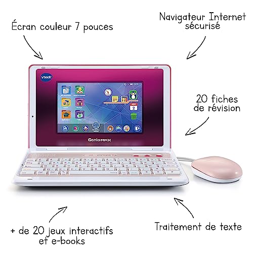 VTech - Genio MAX, My First Real Ordi Rosa Metallo, Computer Bambino con Schermo A Colori 7 Pollice Mouse, 60 Attività e Giochi Educativi, Regalo Bambino da 5 Anni a 12 Anni - Contenuto in Italiano