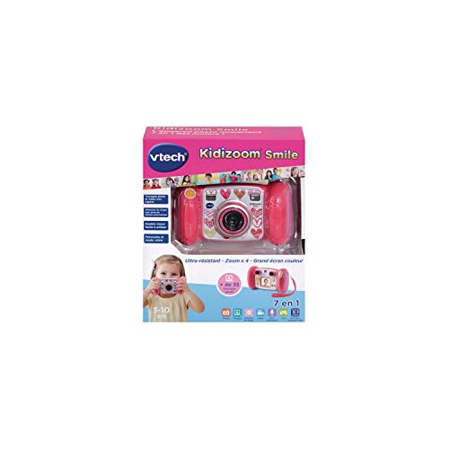 VTech - KidiZoom Smile Rose - Fotocamera digitale per bambini 7 in 1, foto e video, schermo a colori, filtri, cornici ed effetti divertenti, regalo per bambini da 3 anni a 10 anni - Versione francese