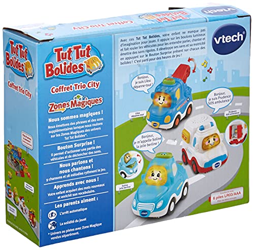 I veicoli sono compatibili con il sistema di rilevamento Zone Magique che innesca frasi e suoni aggiuntivi..6 batterie LR03 fornite (2 per veicolo).
